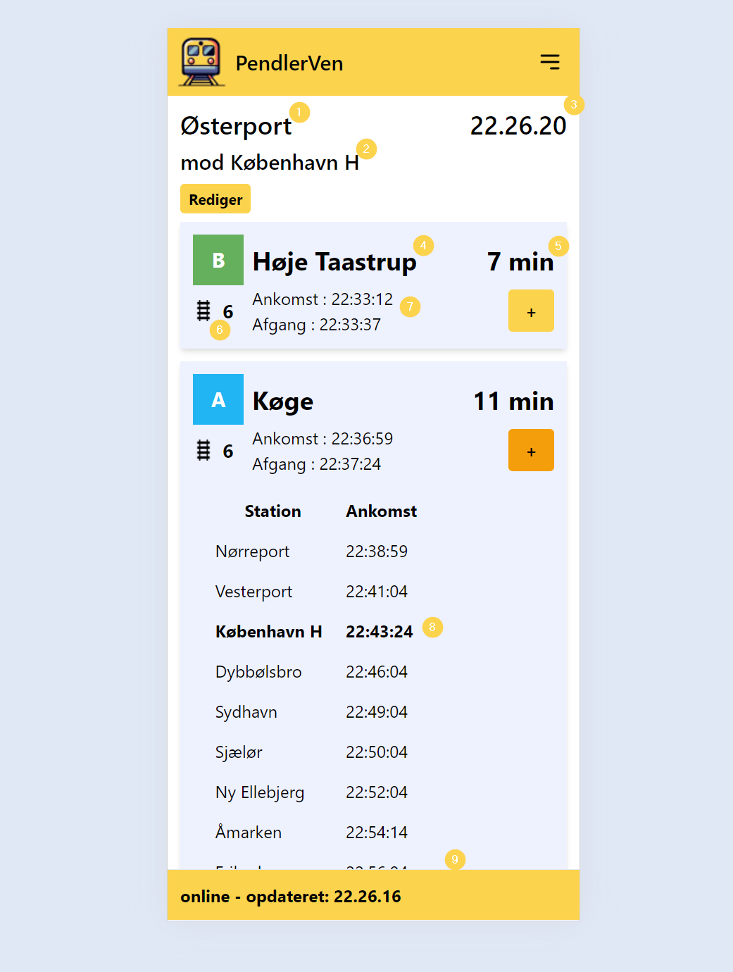 - Live opdateringer Live opdatering på samme præmis som afgangstavlerne på stationen.